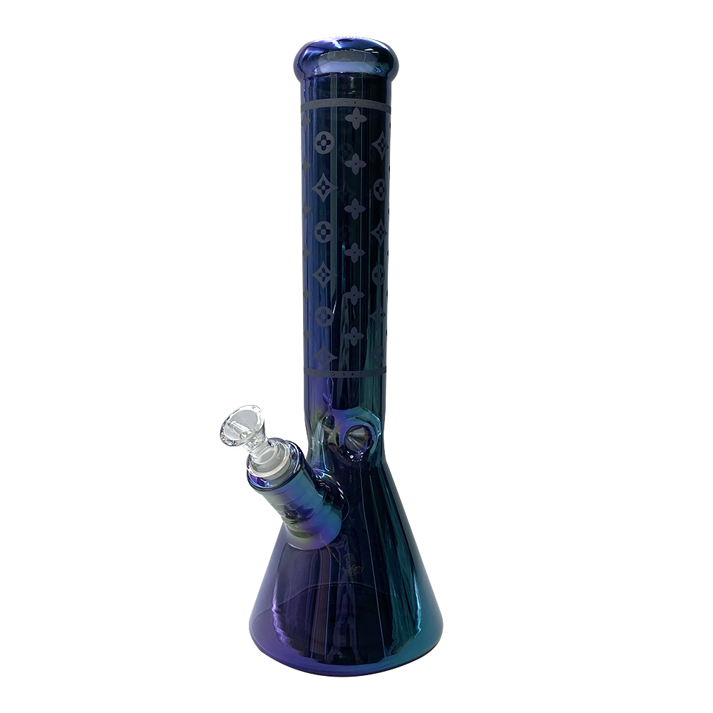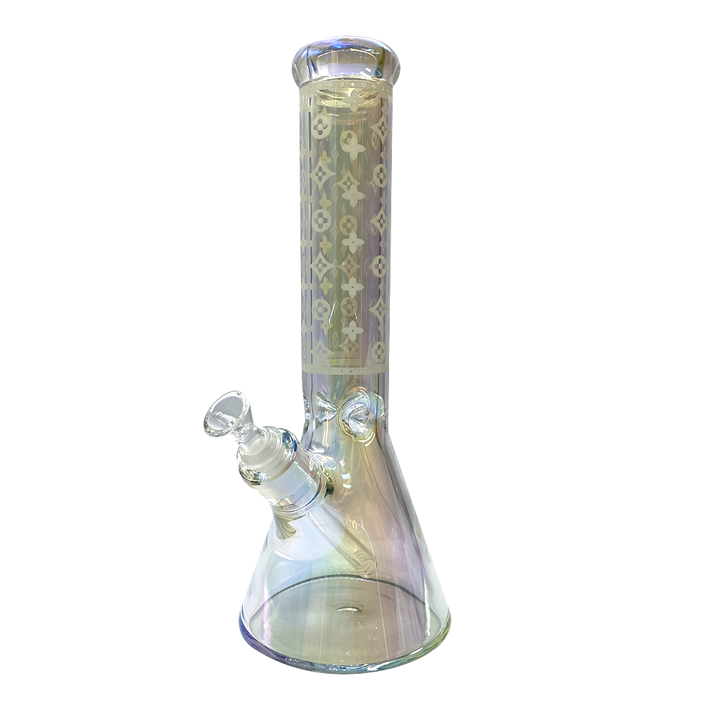 Glass Beaker Bong -14″ Lv Pattern (7mm) – Asst Colours (v17)