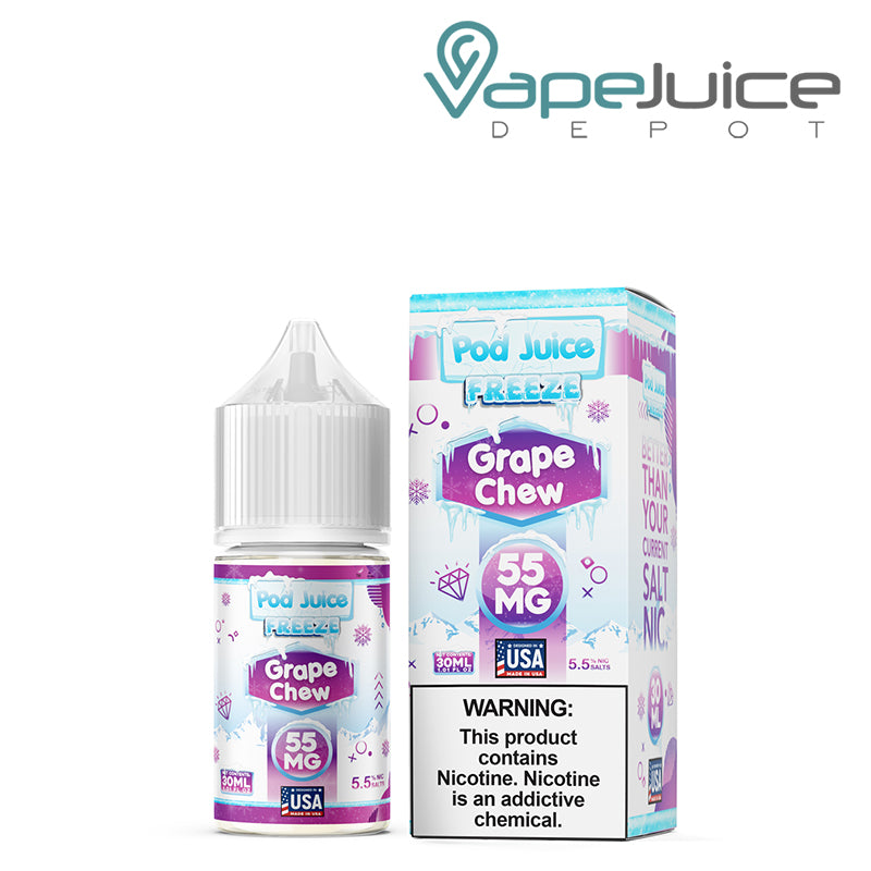 Pod Juice Grape Chew Freeze Salt eLiquid is offered in 30ml unicorn bottles with a balanced VG/PG base. Upgrade your vape line by grabbing these mastered vape crafts and letting them take care of your cravings, mood, and day.