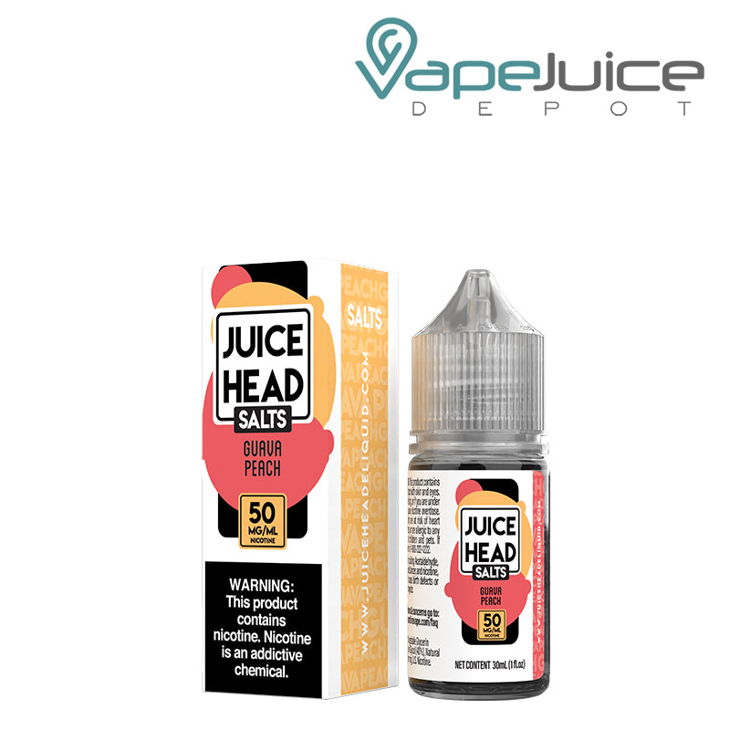 Guava Peach Salts Juice Head eLiquid based on nicotine salt is an amazing combo for hot summer days. Blending juicy peaches with crispy guavas, this twisted vape juice offers a delicate fruity texture that will hack your mind in just a couple of inhales and exhales.