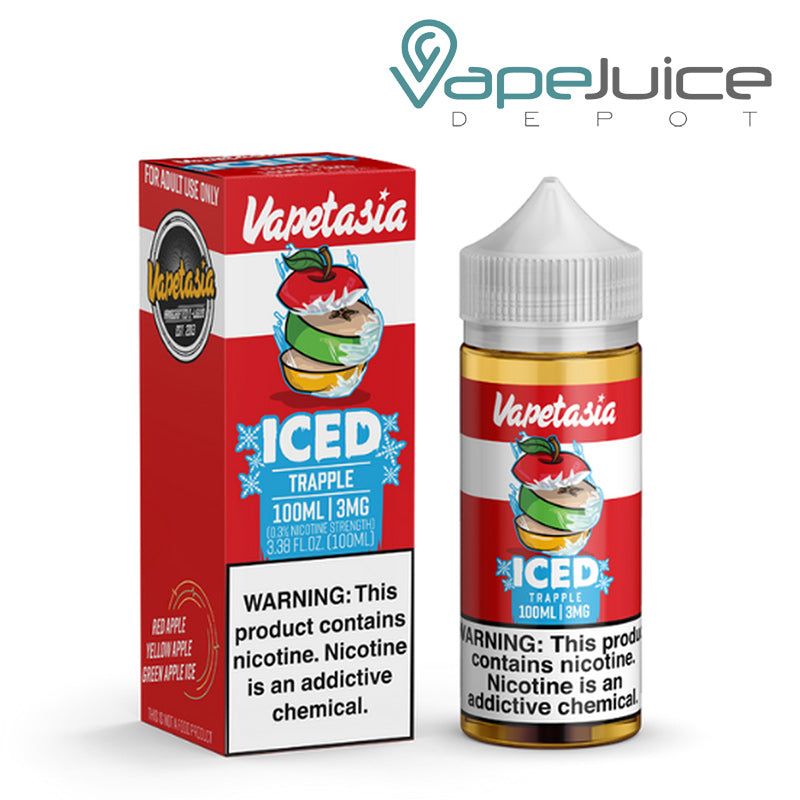 Vapetasia Synthetic Trapple Iced eLiquid is packed in a 100ml chubby gorilla bottle with a 70VG/30PG dense fog production base. Cool down with the perfect balance of apples and menthol that gives off a taste that’s just like a decadent apple dessert. Trapple Iced is a flavorful and versatile vape juice that can be enjoyable all day long.