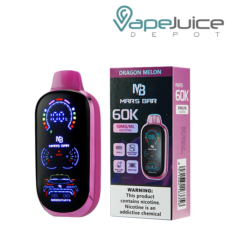 Each bar designed by VRK Vape arrives pre-filled with 5% nicotine salt eLiquid and pre-charged, ready for use. Its digital screen displays puff count and battery life, while mesh coil technology ensures smooth flavor and consistent vapor production. Enjoy 60,000 delicious puffs with Mars Bar Vape.