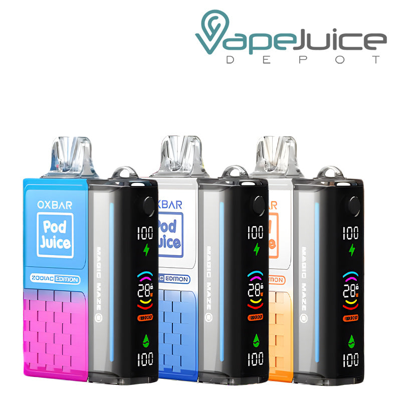 Ready to explore new vaping heights with OXBAR x Pod Juice Magic Maze 2.0 30K Disposable? It is a new, promising edition due to the joint effort of OXBAR and Pod Juice. As an iconic Zodiac Edition, it offers OXBAR Pod Juice flavors associated with zodiac signs. OXBAR Pod Juice disposable vape uses a 900mAh rechargeable battery and supports 12W-18W adjustable wattage.