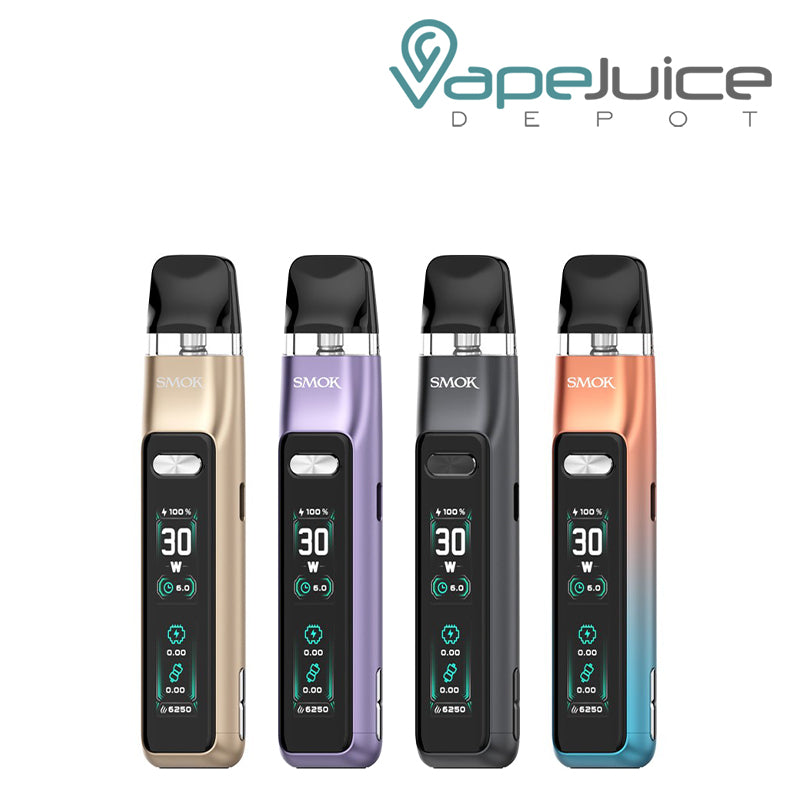SMOK Novo GT Kit utilizes Novo Pod M Series replacement pods featuring 2ml eLiquid capacity, top-fill, and clear design. Pods come with 0.8ohm and 0.6ohm coils and ensure MTL and RDL vaping. GT device is also compatible with all Novo, Novo 2, and Novo 2x pods for a versatile vape experience. SMOK Novo GT Kit has seven color options.